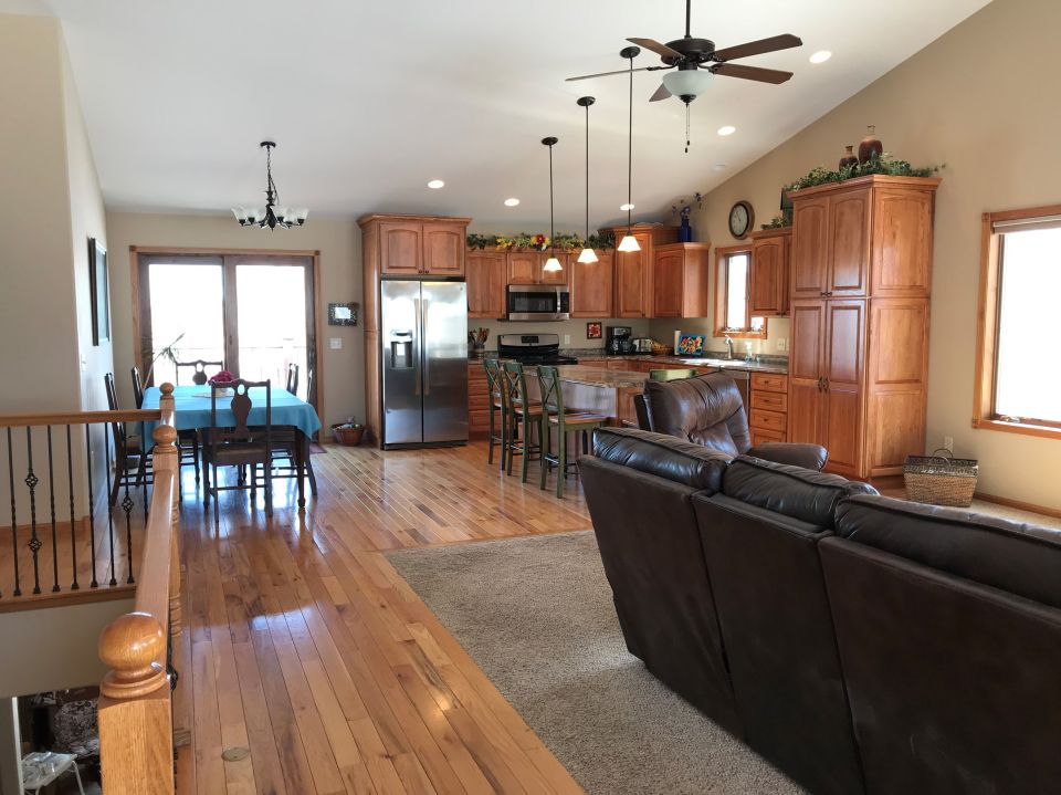 Open concept main floor with 4 bedrooms and 3 baths. Walkout lower level with large family room and ping pong table. Large wrap-around deck overlooking big private backyard.